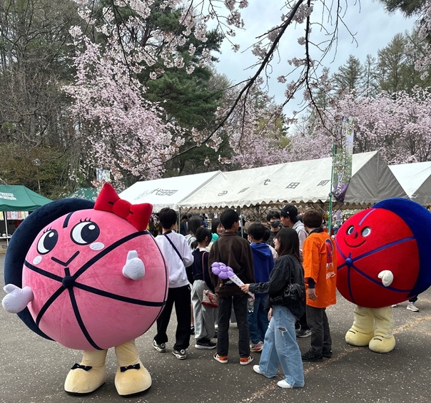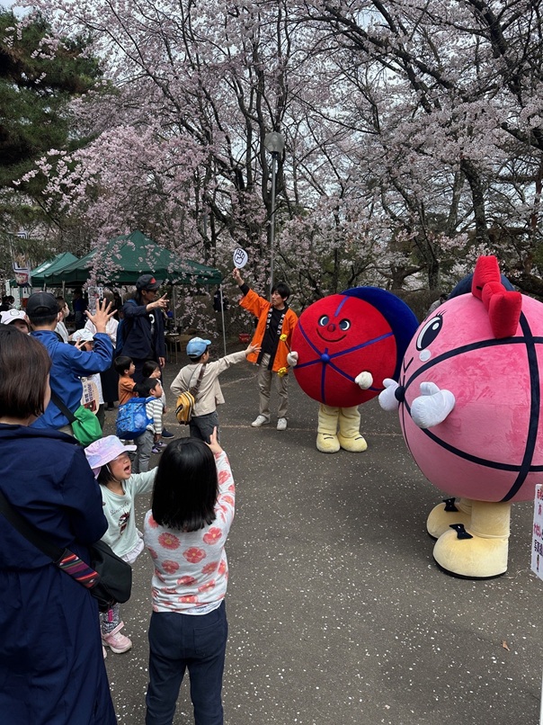 『あかぼうくん』と新マスコットキャラクター『あかりん』が好評で満開の桜の下での写真撮影等にお子様や多くの方に集まっていただきました。